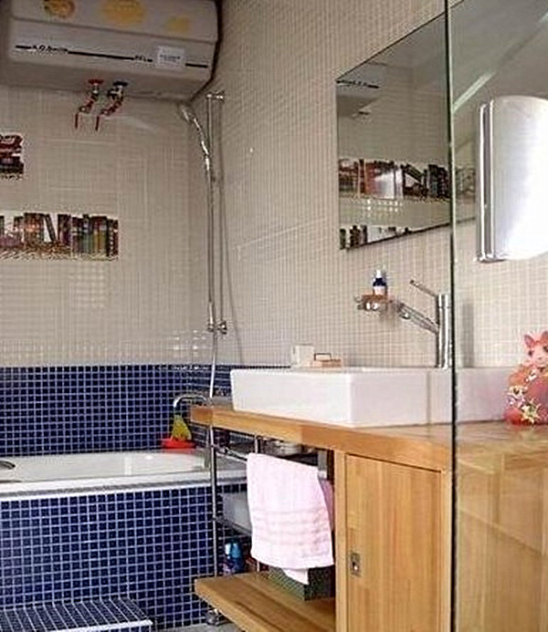 這間衛(wèi)浴搭配的是馬賽克裝飾的效果,非常之適合年輕人的口味,時(shí)尚又有極強(qiáng)的視覺(jué)沖擊力,跳躍感極強(qiáng),當(dāng)然最重要的另一點(diǎn)就是它的極其易清理。
