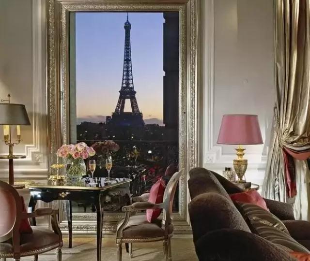 從這個(gè)五星級(jí)酒店豪華套房里,你可以以完美角度欣賞到艾菲爾鐵塔。