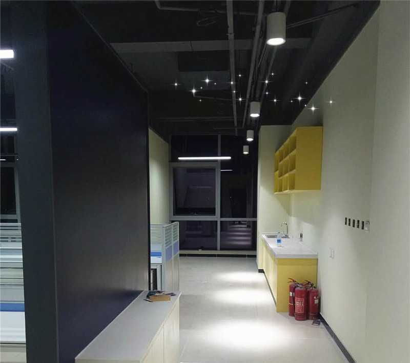 亮點1:辦公區(qū)吊頂應用原頂灰色環(huán)保漆料噴涂, 顏色簡潔大方,給人以沉穩(wěn)的視覺感官效應,其吊頂優(yōu)點是節(jié)約成本,便于維修。