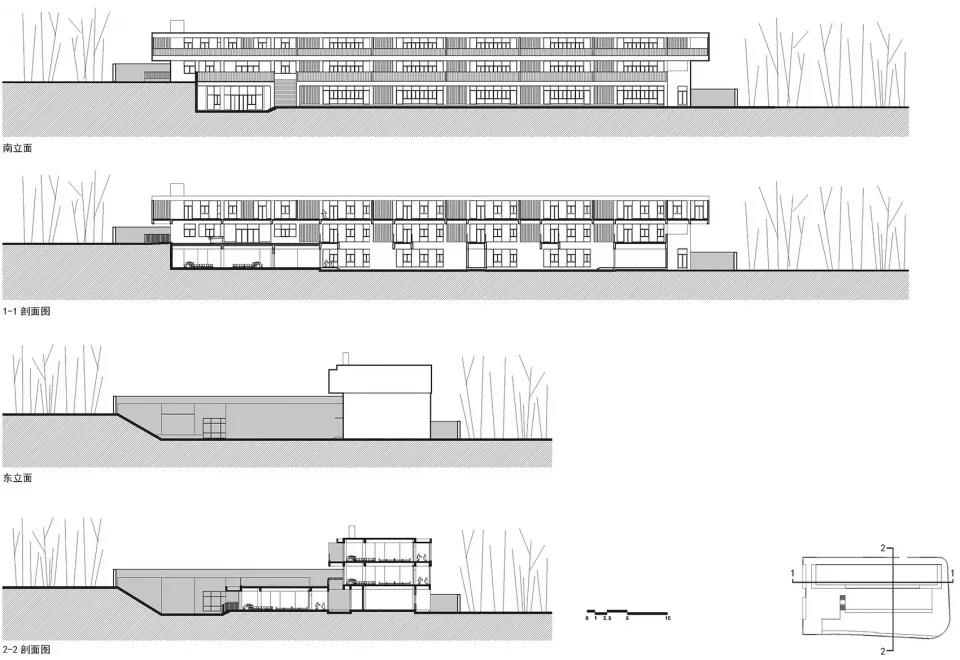 方案試圖盡量降低建筑體量,希望把幼兒園體量盡量做得低矮,看上去是兩層或者一層的樣子。