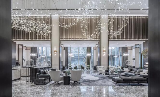 保利天悅銷售中心,位于成都城市核心南二環(huán)東湖區(qū)域,是保利“悅”系頂豪產(chǎn)品。樸悅承接該項目的銷售中心改造。面對項目服務(wù)特性,設(shè)計思考更多的是:如何區(qū)別于常規(guī)售樓處單純的展示,以塑造獨特的空間體驗,作為銷售道具去發(fā)揮其最大的營銷功能?因此,設(shè)計以腔調(diào)、個性、品質(zhì),取代過往售樓處熱鬧張揚的場景營造,在目標客戶群體參觀過程中介入沉浸式體驗,讓空間表達最終回歸到他們的心理感受。