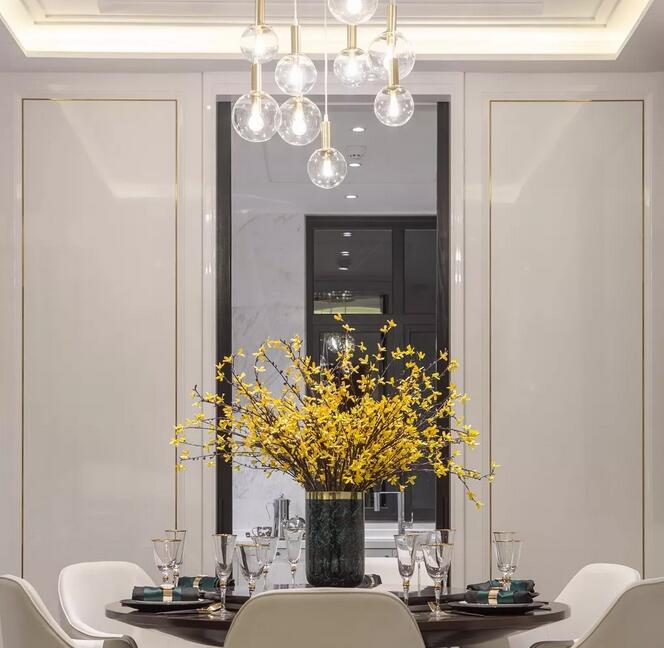 墻面亮白色的護(hù)墻板加上亮金色鋼條組合,簡(jiǎn)化了歐式繁復(fù)的做法,能夠體現(xiàn)出當(dāng)代生活下的歐式高貴情結(jié)。