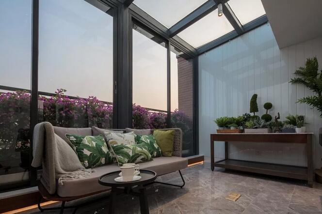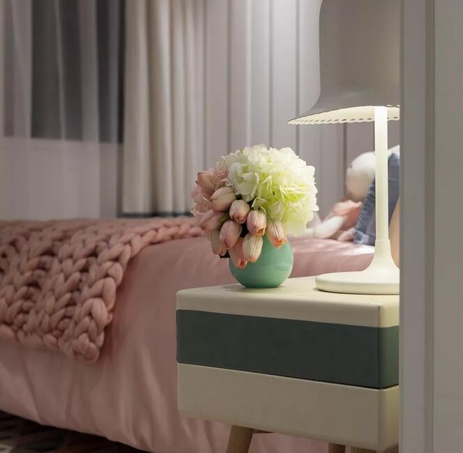 在黑白灰中加入藍(lán)綠色,灰色調(diào)的沉穩(wěn)內(nèi)斂,藍(lán)綠色調(diào)的溫婉柔和,演繹出家居時(shí)尚的經(jīng)典搭配。