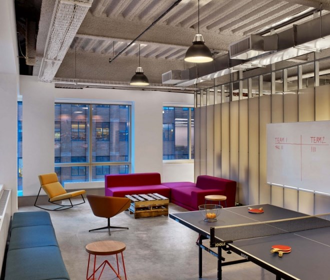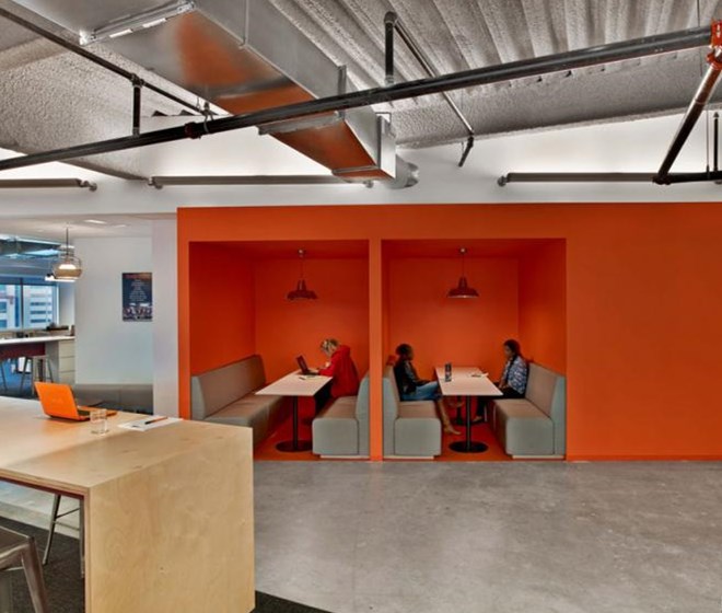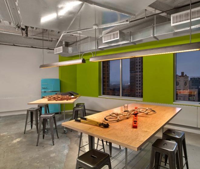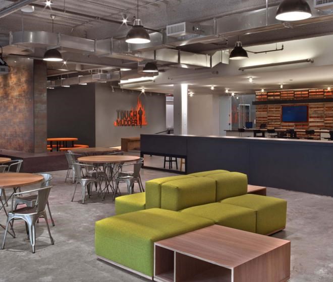 客戶(hù)進(jìn)入辦公室應(yīng)該可以通過(guò)辦公室的顏色、形狀和工作氛圍來(lái)描述出該公司是做什么的,并且怎么做的。Tough Mudder的總部就是這樣的設(shè)計(jì)作品,該辦公室是由M Moser Associates完成的。