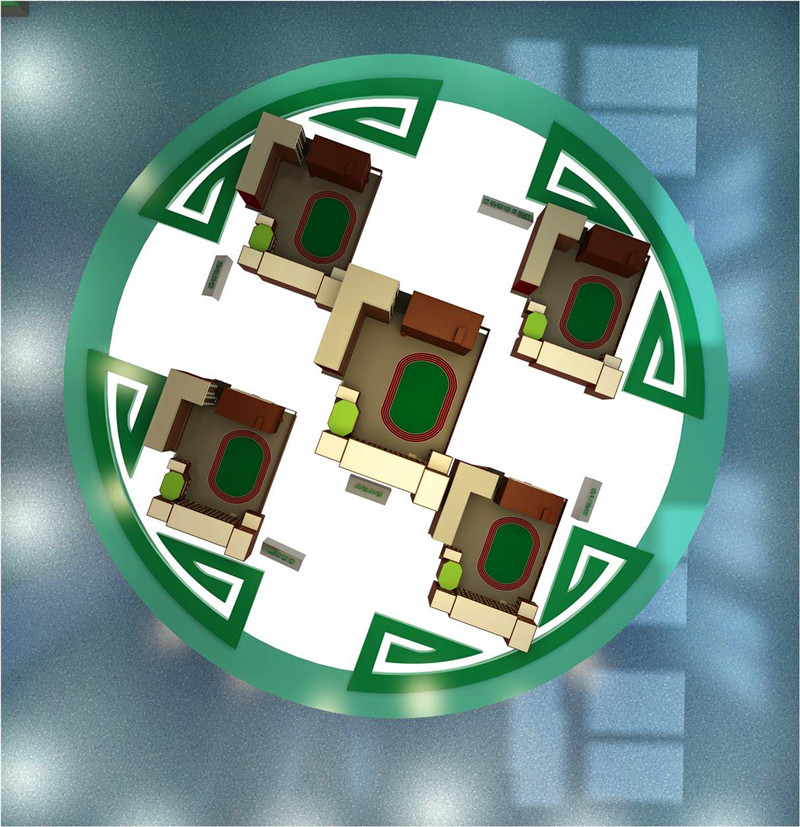 本案采用翠微小學(xué)自身固有的顏色及圖案,深入展現(xiàn)翠微的文化內(nèi)涵“翠”的人本, “微”的細(xì)致的核心價(jià)值觀,處處體現(xiàn)翠微的基本色——綠色。
