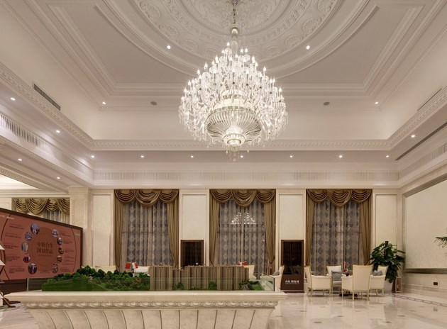 售樓處的造型是在傳承這樣的的一種理念,利用現(xiàn)代的半透明的金屬幕簾這樣一種綠色環(huán)保材料形成內(nèi)外空間的在視覺上和空間上內(nèi)斂而優(yōu)雅的過渡,半透明材料所呈現(xiàn)的若隱若現(xiàn)的視覺模糊傳遞著層次豐富的空間縱深感。