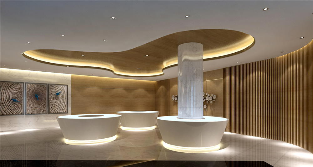 吊燈的設(shè)計簡單大方,讓整個接待區(qū)都顯得更加寬敞明亮,白色的大理石質(zhì)感的地板充滿了溫暖的氣息,可以讓顧客感到更加溫馨典雅。