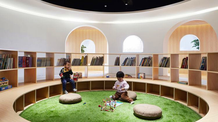 利用包柱子設(shè)計了一個休息區(qū),給孩子增添了一個閱讀及休息的場所。