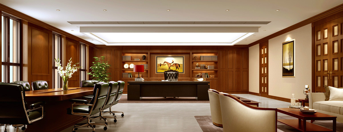 設(shè)計(jì)以該公司悠及久的歷史和中國(guó)傳統(tǒng)文化相結(jié)合作為主調(diào),通過(guò)精心雕刻的灰色石雕,絲線皮革、胡桃木、馬來(lái)漆,以及木地板上的東方織毯等多種手法來(lái)體現(xiàn)。